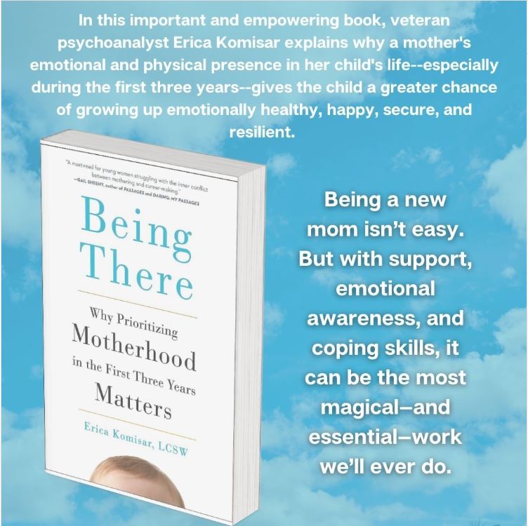 在這本著作Being There中,資深心理分析師Erica Komisar解釋了為什麼母親在孩子生活中的情感與親身臨在(尤其是在最初的三年)能讓孩子有更大的機會在成長過程中擁有情感健康、快樂、安全感與抗壓性。